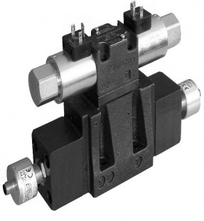 Pilot operated distributor solenoid/hydraulic controlled