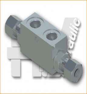 In-line double acting pilot operated check valve